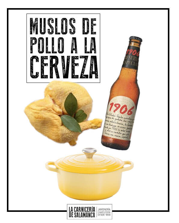 Para hacer una receta completa de muslos de pollo a la cerveza, añadimos a tu producto una cerveza especial 1906. ¡Te va a quedar de maravilla!
